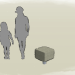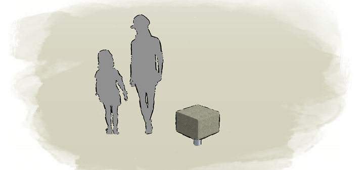 The Surfacing CO Concrete Cube Seat is a concrete cube with galvanised steel mounting legs.