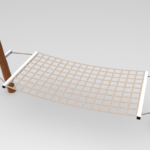 The net itself has an interesting history, being developed for the military it is designed to be tough enough to catch a plane, yet soft enough for children to play on. The motion of the net is similar to a regular hammock but we’ve made it easier to get into and out of through the way it connects to the solid Australian jarrah posts.